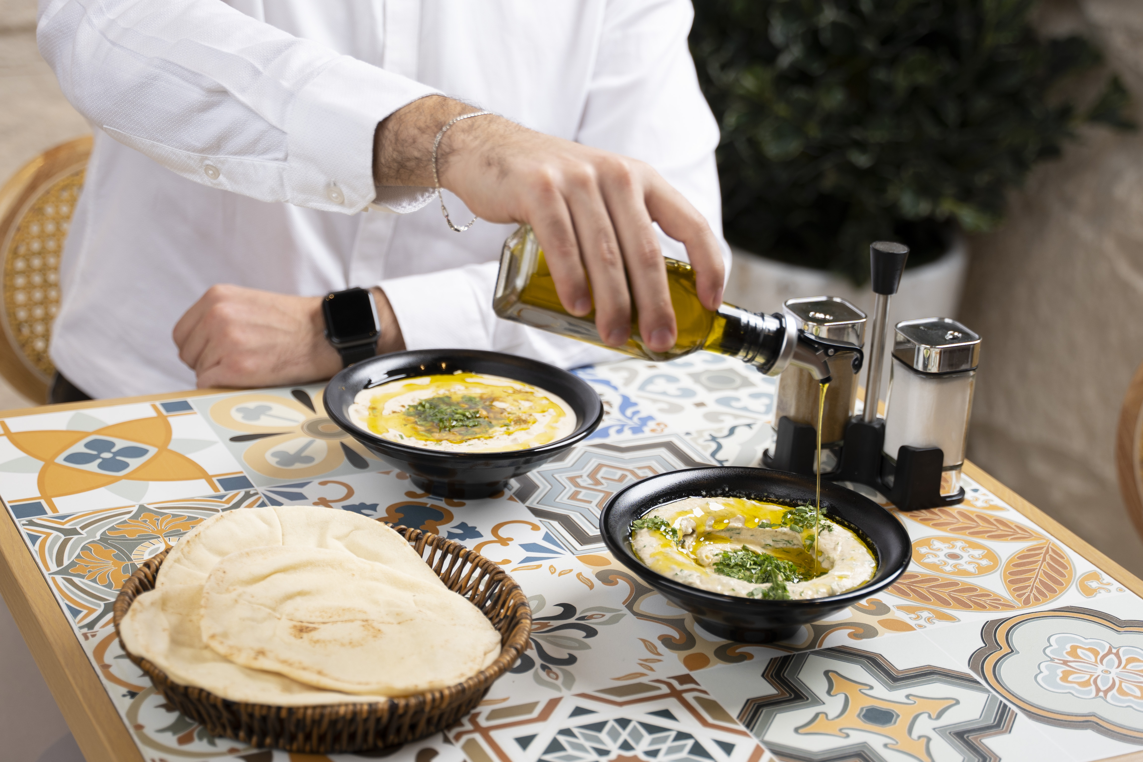Providing hummus, mutabbal, musabbaha, and falafel dough by the kilo. All products are available in sizes from 1 kg to 5 kg based on the customer's request. The factory is equipped with the latest technology and operates according to strict quality standards, with the ability to produce more than 3 tons of the finest raw materials through mixtures and preparation methods inherited through generations of the family for a distinctive, ancient and delicious taste.